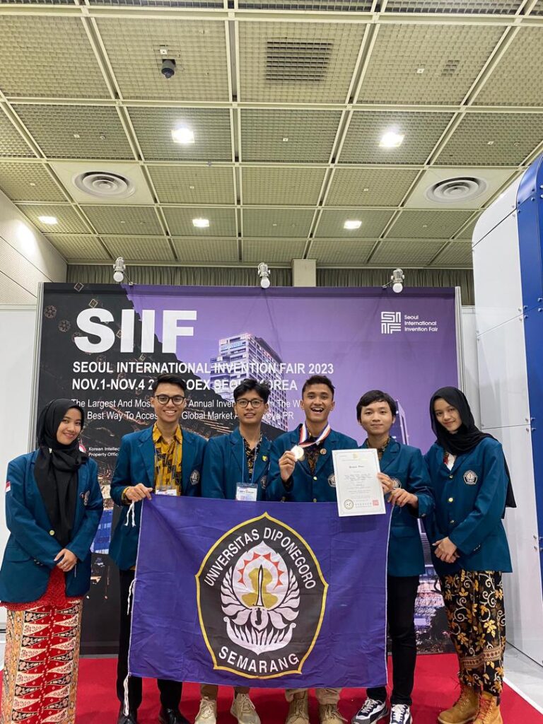 fsm.undip.ac.id/(23/01) Dalam ajang bergengsi Seoul International Invention Fair yang diselenggarakan di Coex Exhibition Center, Seoul, Korea Selatan pada tanggal 1 hingga 4 November 2023, Indonesia yang diwakili oleh Universitas Diponegoro berhasil meraih prestasi luar biasa. Tim Kimia Undip yang terdiri dari mahasiswa berbakat berhasil menorehkan prestasi gemilang dengan meraih medali perunggu pada kompetisi tersebut.