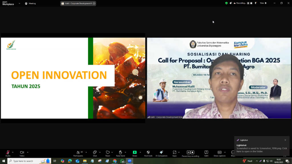 Semarang – Fakultas Sains dan Matematika (FSM) Universitas Diponegoro (Undip) bekerja sama dengan PT Bumitama Gunajaya Agro (BGA) dalam menyelenggarakan sosialisasi dan sharing terkait Call for Proposal: Open Innovation BGA 2025 melalui platform Zoom pada 18 Februari 2025. Acara ini menghadirkan narasumber utama Bapak Muhammad Kalili selaku Corporate Development Bidang Inovasi PT BGA dan dimoderatori […]