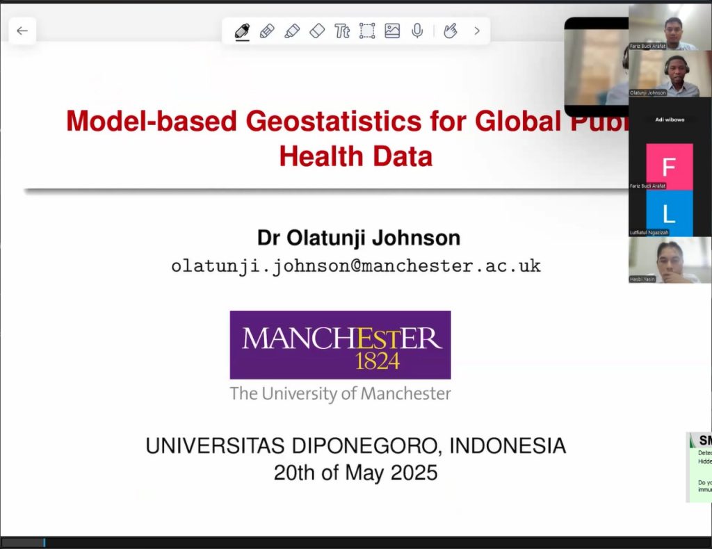Sebagai bagian dari Program World Class University (WCU), Departemen Statistika Universitas Diponegoro (UNDIP) sukses menyelenggarakan Kuliah Tamu Online yang menghadirkan Dr. Olatunji Johnson dari Department of Mathematics, University of Manchester. Acara yang berlangsung pada 20 Mei 2025 melalui Zoom ini diikuti oleh lebih dari 200 peserta, termasuk mahasiswa, dosen, dan peneliti yang tertarik dengan metodologi […]