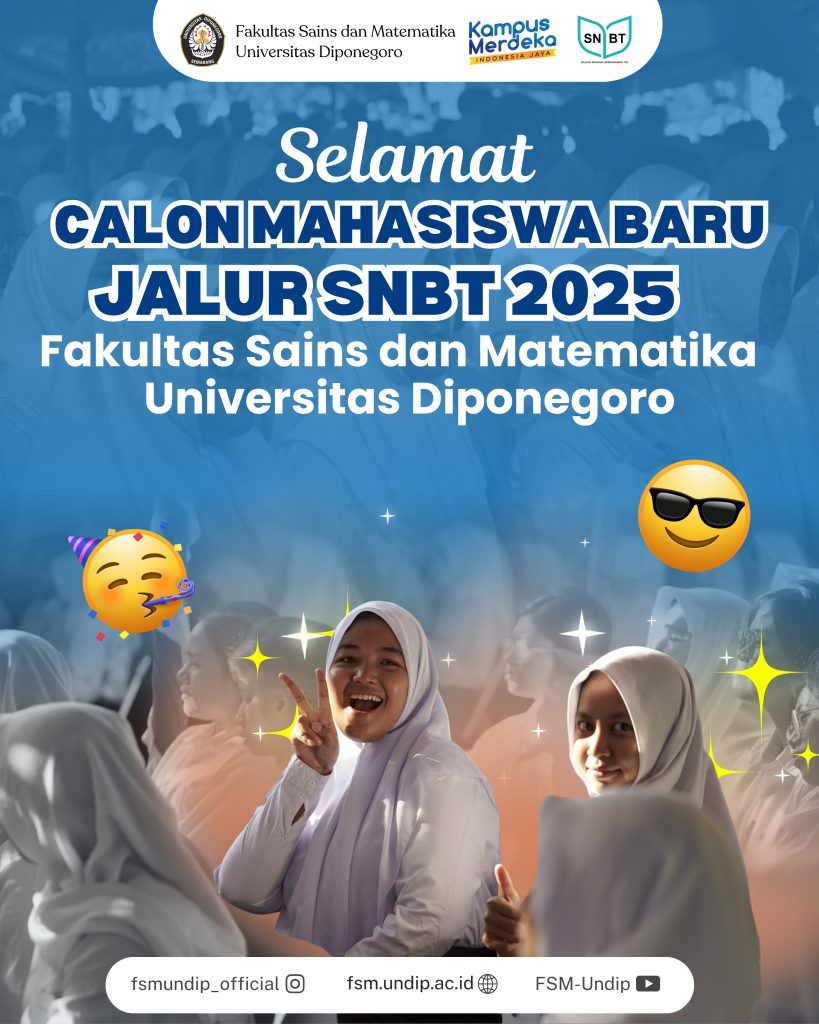 Fakultas Sains dan Matematika Universitas Diponegoro dengan bangga mengucapkan Selamat kepada para Calon Mahasiswa Baru Fakultas Sains dan Matematika Undip jalur SNBT 2025! Selamat bergabung di FSM UNDIP, persiapkan diri untuk perjalanan akademik yang seru dan penuh tantangan di Kampus Undip Tembalang. Jangan lupa untuk segera melakukan Registrasi Ulang pada tautan berikut: ????Registrasi Ulang Calon […]