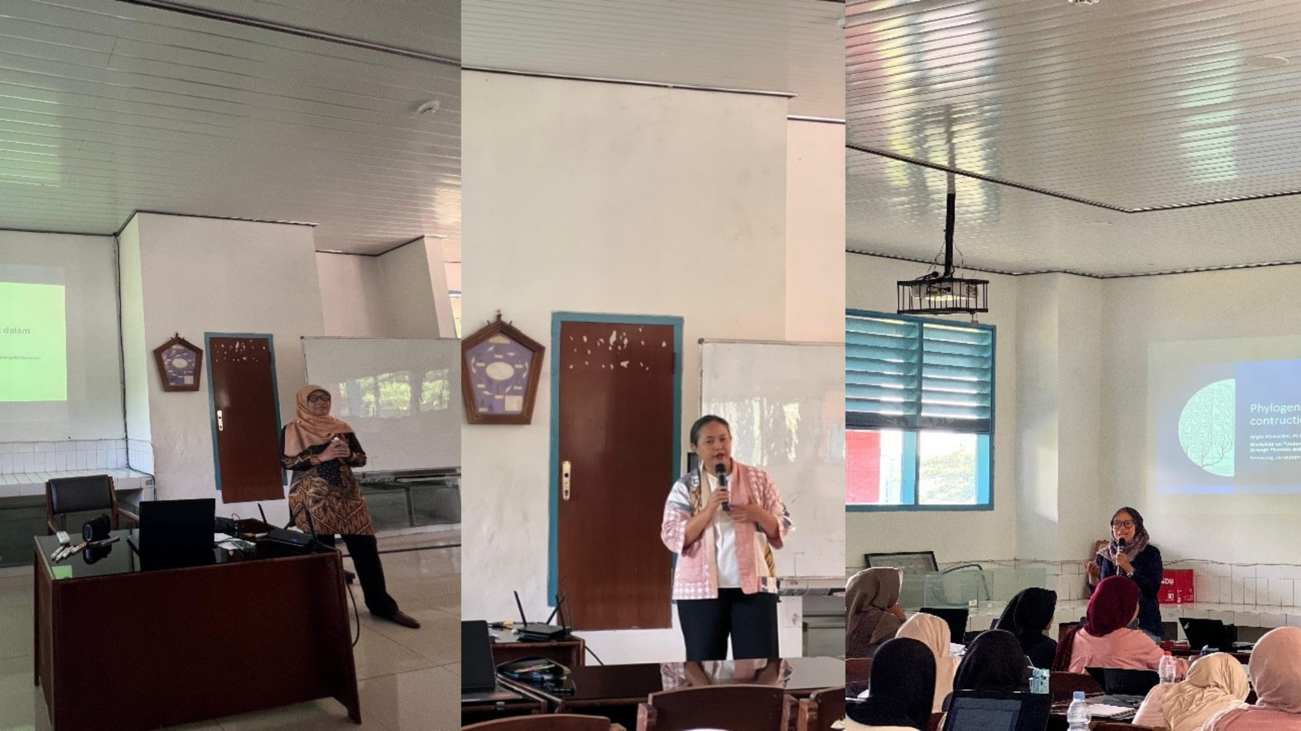 Tiga narasumber hadir menyampaikan materi kunci. Dr. Lilih Khotimperwati (FSM UNDIP) membahas dasar-dasar fenetik, Ni Kadek Dita Cahyani, Ph.D (FSM UNDIP) memaparkan pengantar filogenetik, sedangkan Angka Mahardini, Ph.D (Universitas Muhammadiyah Semarang; postdoctoral di FSM UNDIP dengan pendanaan WCU FSM 2025) mengulas teknik analisis pohon filogenetik. Rangkaian materi disusun untuk membangun alur pemahaman yang runtut, dari konsep hingga penerapan.