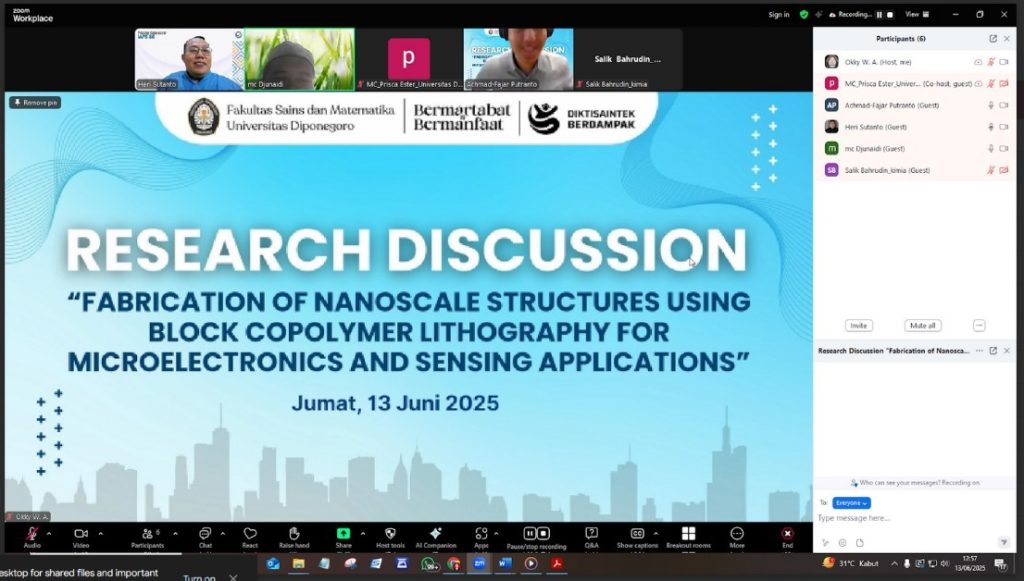 Sebagai bagian dari Program World Class University (WCU), Fakultas Sains dan Matematika Universitas Diponegoro (FSM UNDIP) kembali menggelar kegiatan Visiting Professor Online dengan menghadirkan peneliti diaspora Indonesia dari Prancis, pada Kamis, 13 Juni 2025. Kegiatan ini diselenggarakan oleh Departemen Fisika dan Program Studi Doktor Sains dan Matematika FSM UNDIP dalam rangka peningkatan mutu riset dan […]