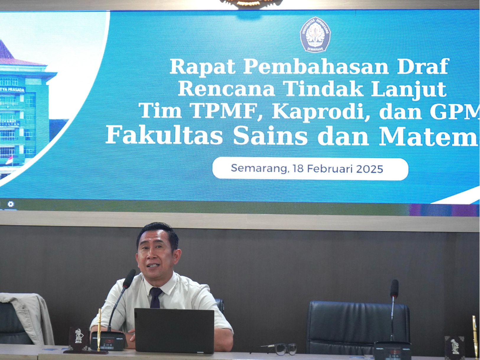 Semarang – The Faculty of Science and Mathematics (FSM) Diponegoro University held a Draft Follow-up Plan (RTL) Discussion Meeting on February 18, 2025, in the 4th Floor Conference Room of Acintya Prasada Building FSM UNDIP, which faculty leaders, heads of study programs, TPMF and GPM teams attended.