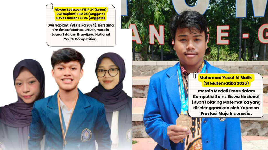 The Faculty of Science and Mathematics (FSM) at Diponegoro University once again marked a series of outstanding achievements through the success of its students throughout September 2025. FSM students demonstrated their academic excellence, innovation, and collaborative spirit in various national and international competitions, spanning science, technology, and even martial arts.
