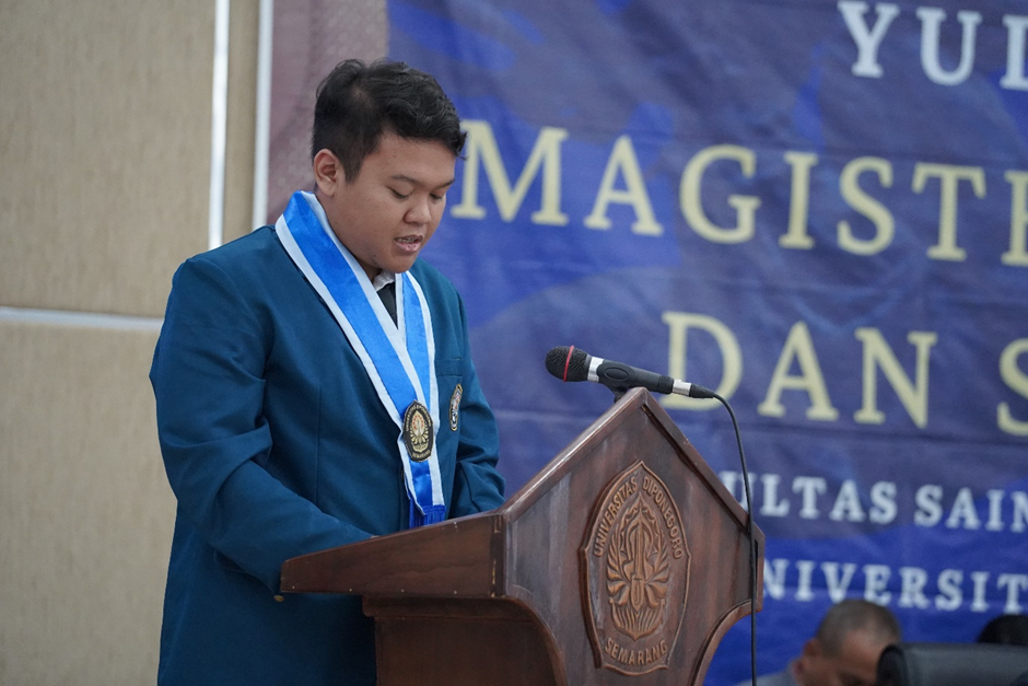 Valedictory messages were delivered separately in both sessions: Nada Ahmad Raihan (Bachelor’s/S1 in Biology) in the first session and Ibnu Bayu Aji (Bachelor’s/S1 in Statistics) in the second. Both expressed gratitude to parents, lecturers, and academic staff for their sincere guidance, and apologized for any shortcomings during their studies. They also sought prayers for smooth pathways to employment and further education. Before the audience, they affirmed, “we came as students and now return as family”; the faculty has guided them to understand the meaning of the journey—that no matter how heavy the process, it has shaped their maturity. Time teaches that not everyone who departs together will arrive together, yet as Diponegoro youth, the graduates are ready to continue serving and contributing to society.